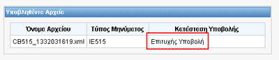 Πατώντας το θα γίνει η υποβολή του αρχείου xml στην περίπτωση που στη θέση Τύπος Μεταφόρτωσης Αρχείου έχετε επιλεγμένο το Υποβολή ή θα γίνει απλός έλεγχος στην περίπτωση που έχετε επιλεγμένο το Επικύρωση .
